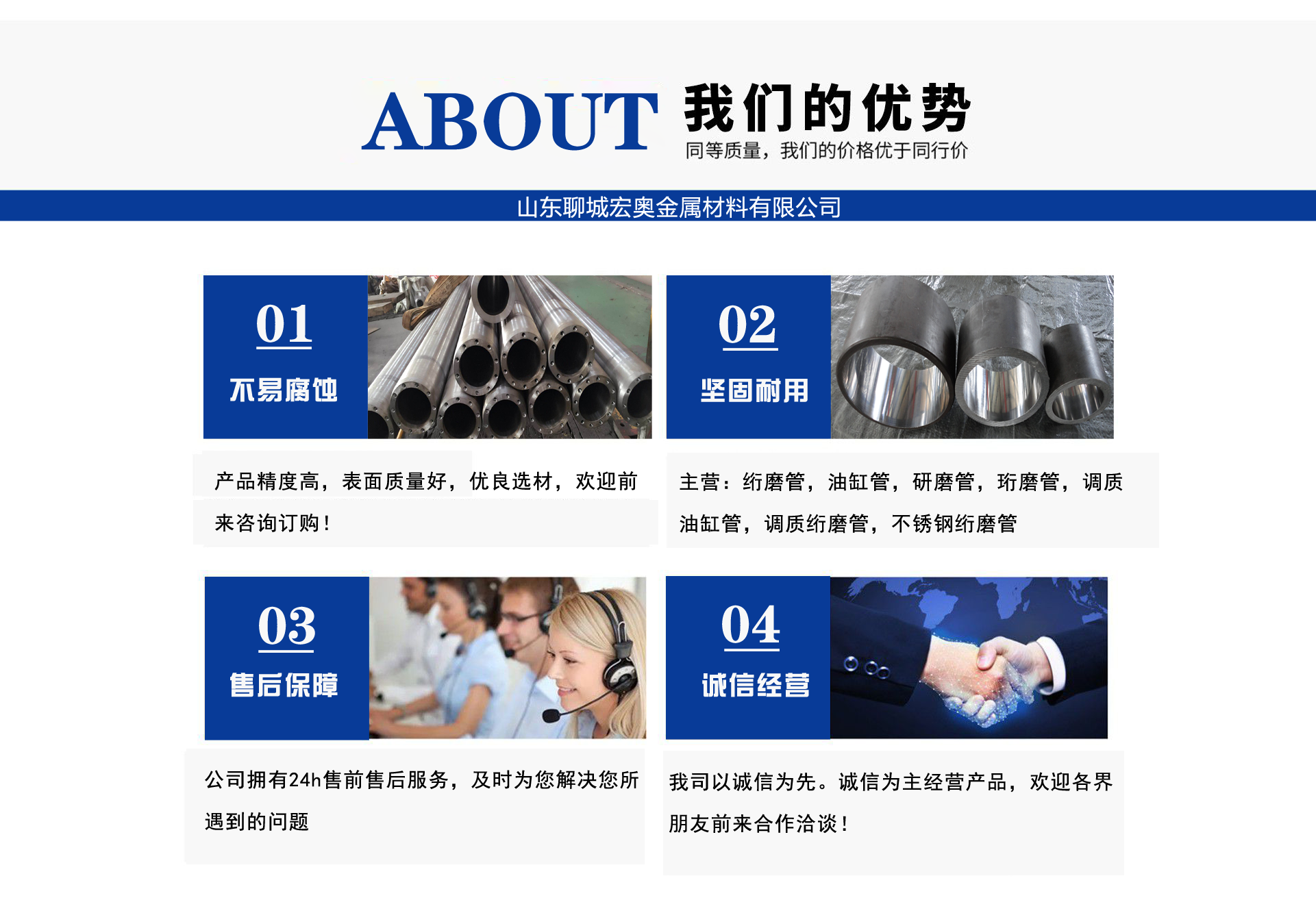 絎磨管,油缸管,研磨管,珩磨管,調質油缸管,調質絎磨管,不銹鋼絎磨管-山東聊城宏奧金屬材料有限公司 公司簡介/ ABOUT